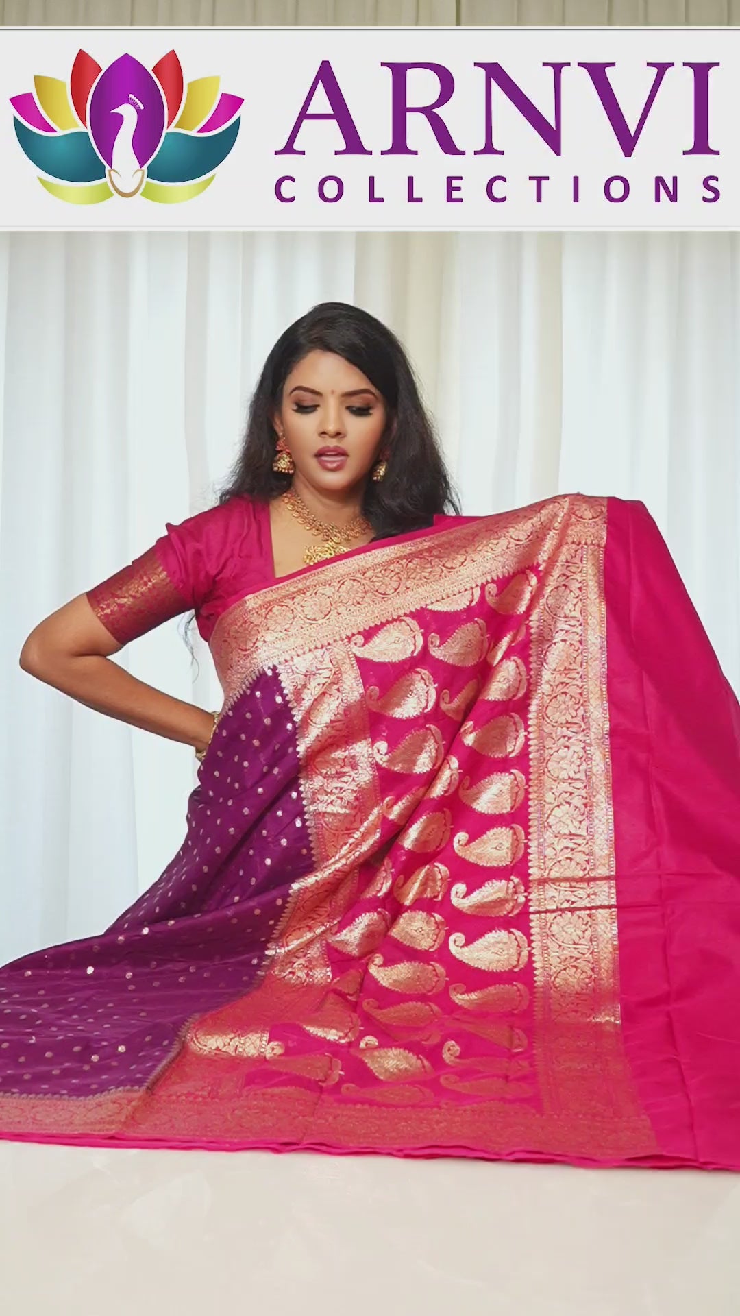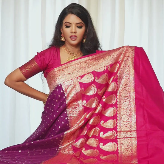 Banarasi Soft Silk Deep Violet And Vibrant Pink Saree