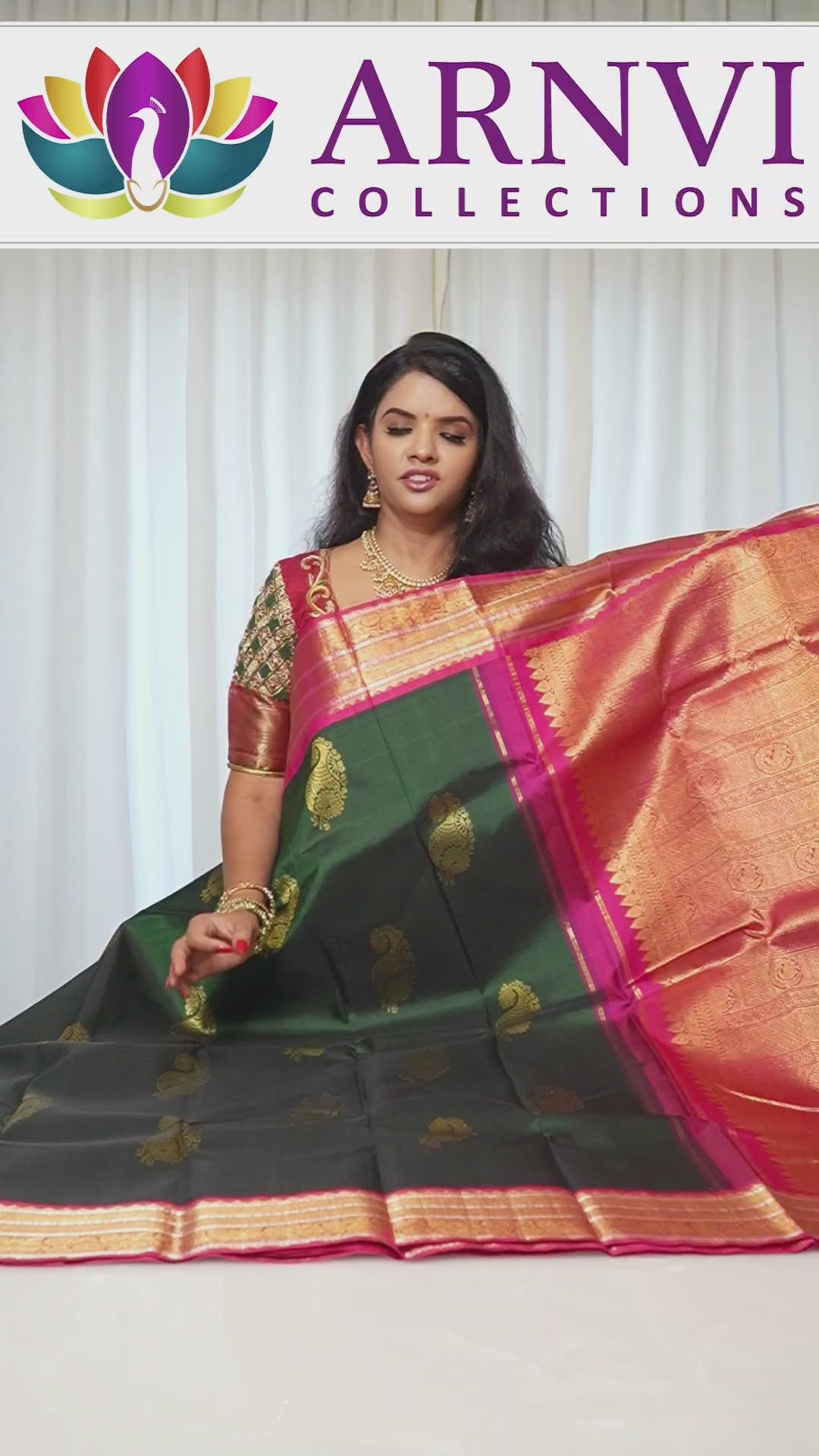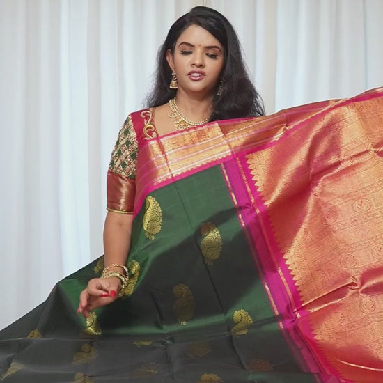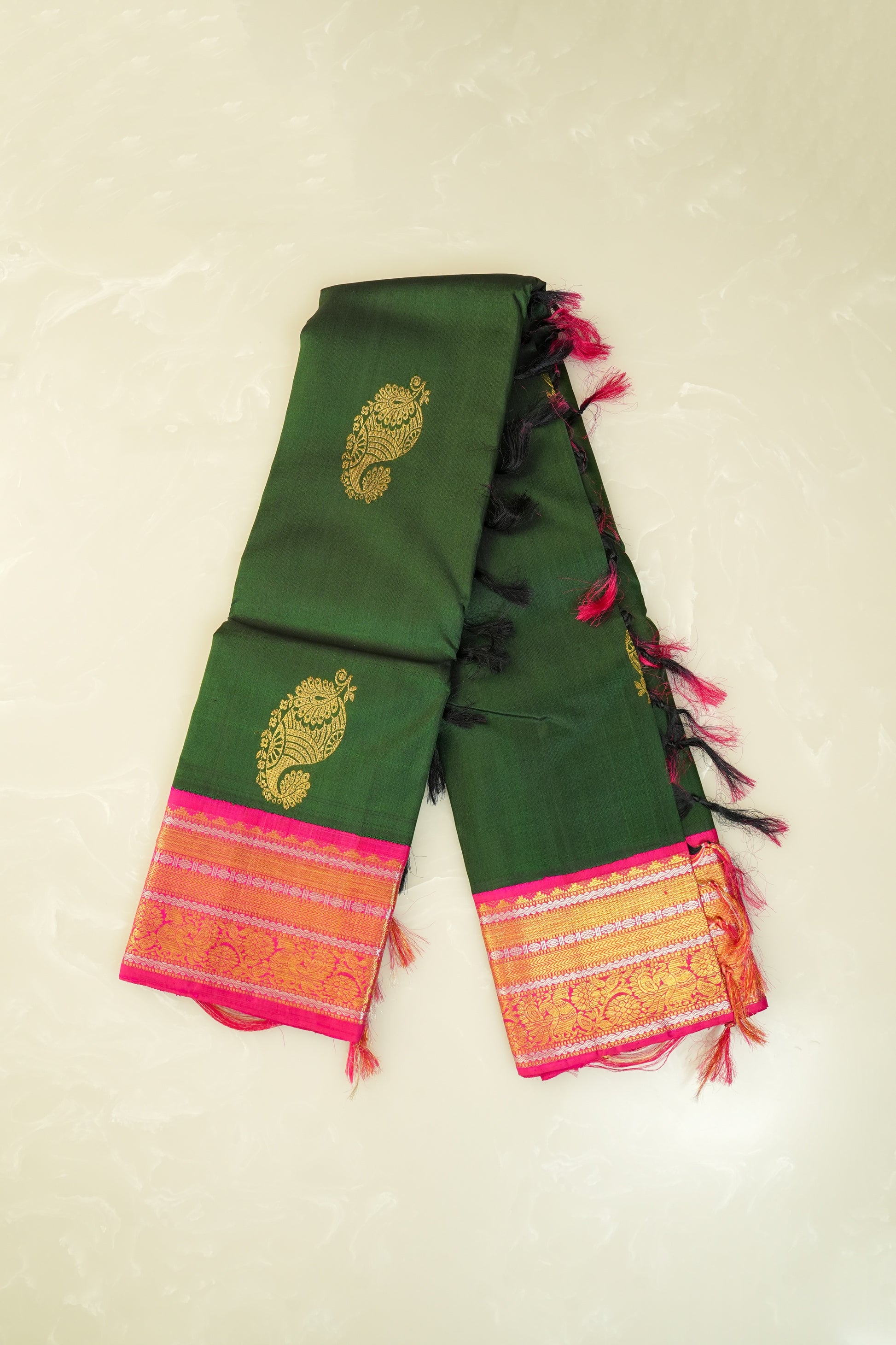 Kanjivaram Pure Bottle green With Magenta Border And Golden Zari Pallu Silk Saree