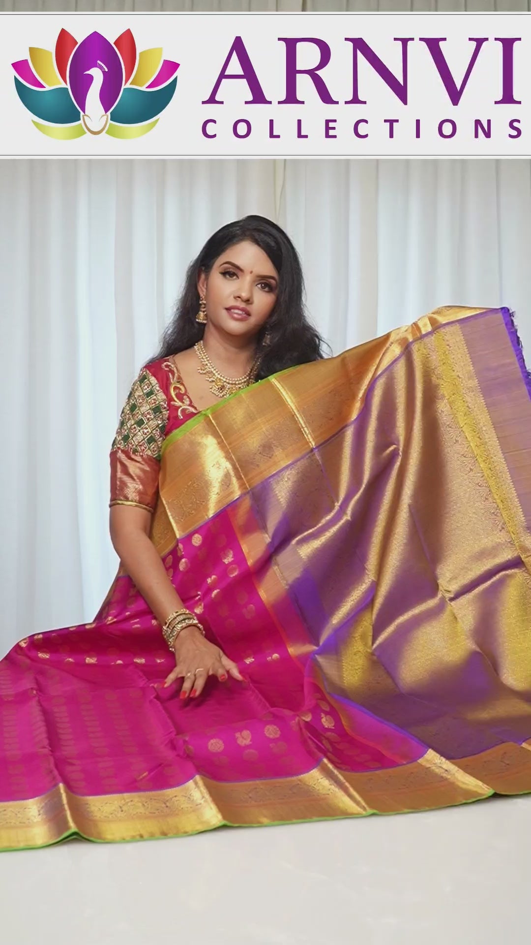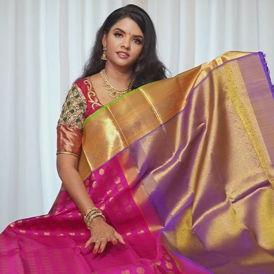 Kanjivaram Pure Silk Magenta Pink With Golden Zari Border & Pallu Saree