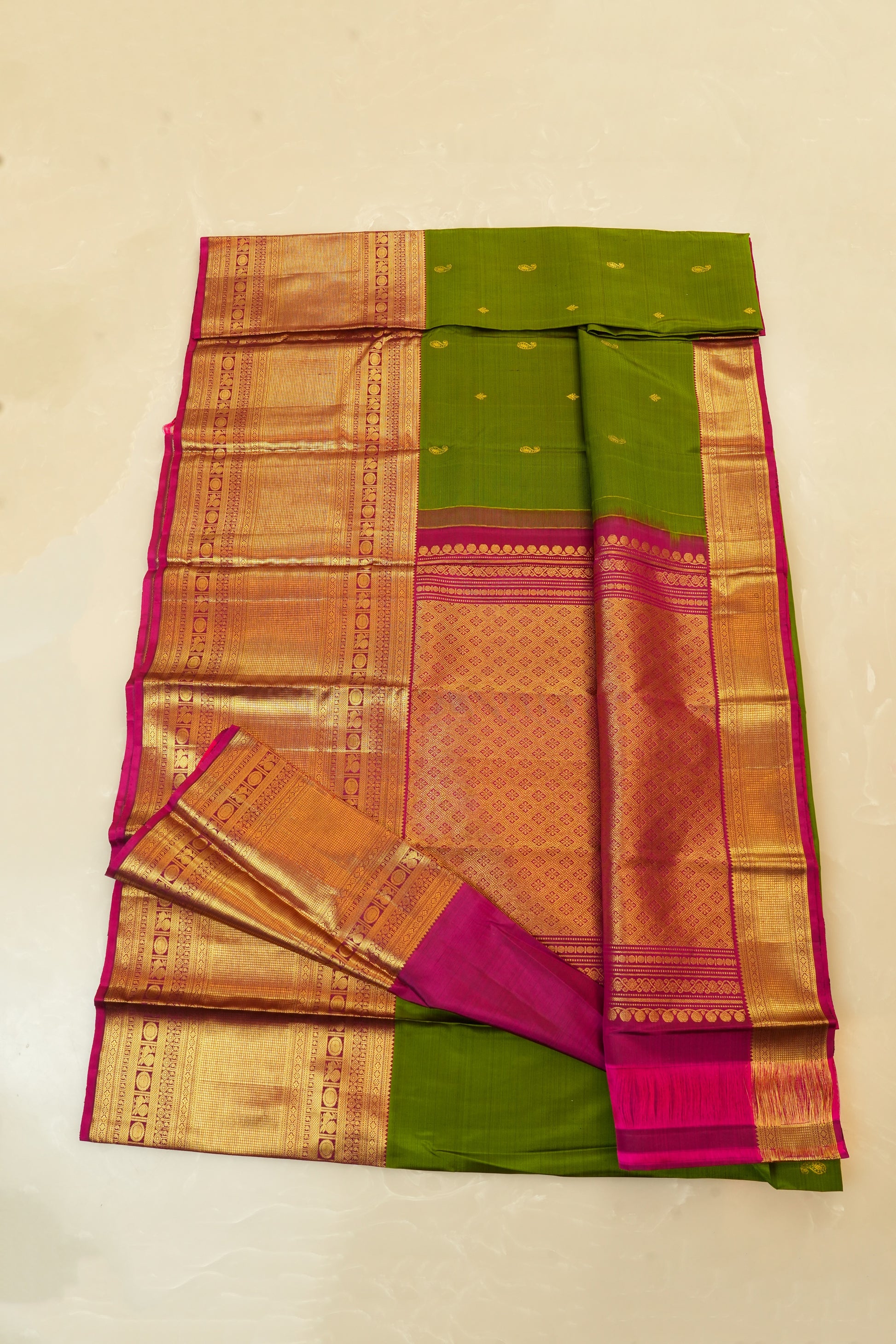 Kanjivaram Silk Saree – Green & Pink with Rich Zari Work