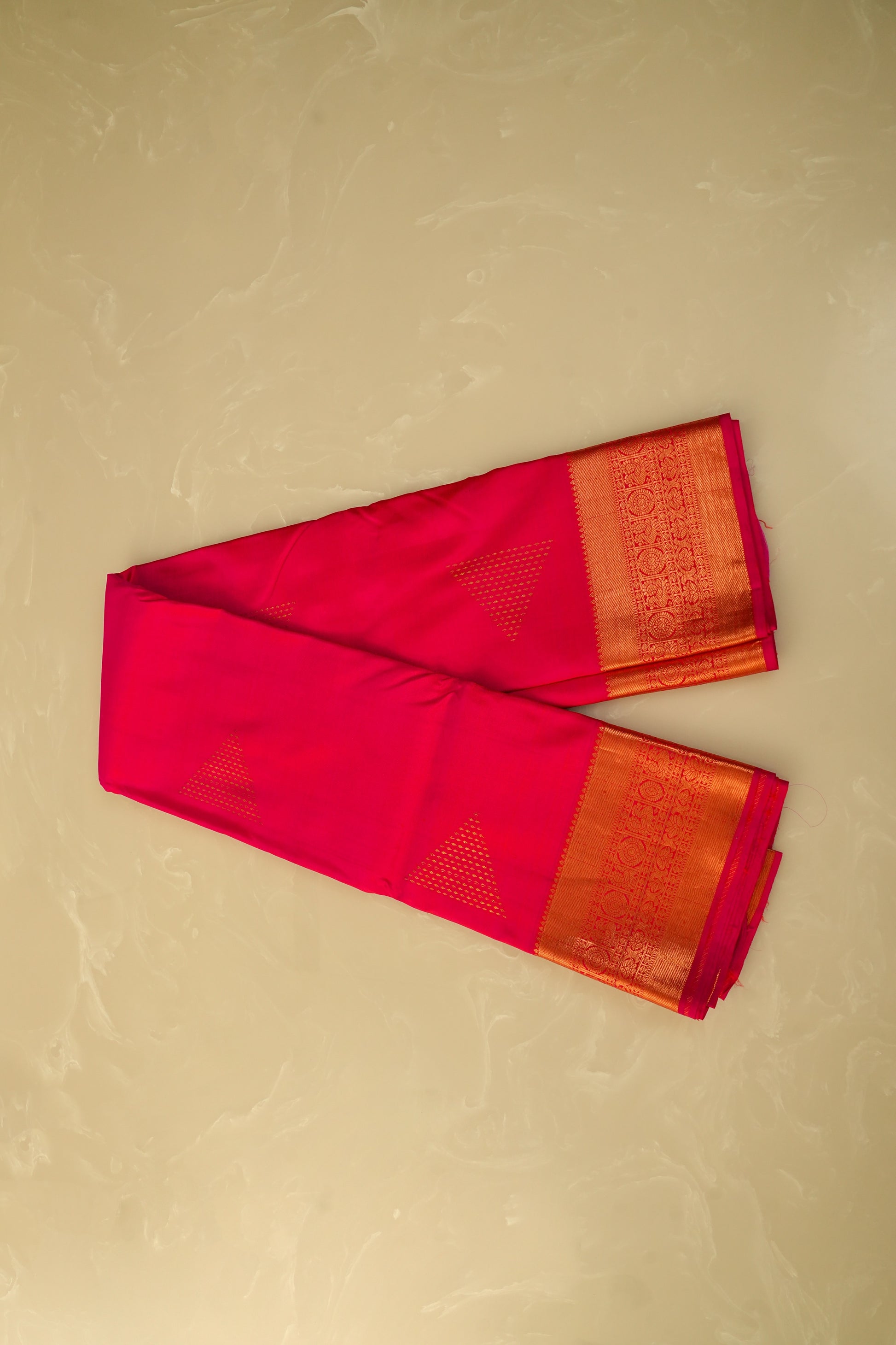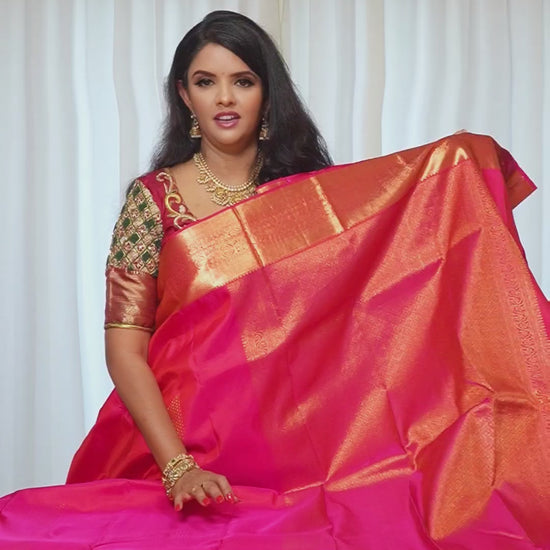 Kanjivaram Silk Saree โ Hot Pink & Orange With Rich Gold Zari Work