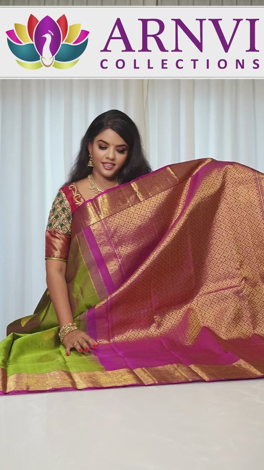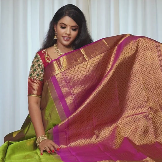 Kanjivaram Silk Saree โ Green & Pink with Rich Zari Work
