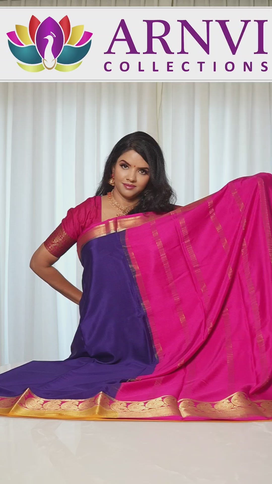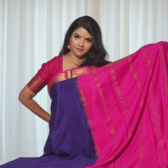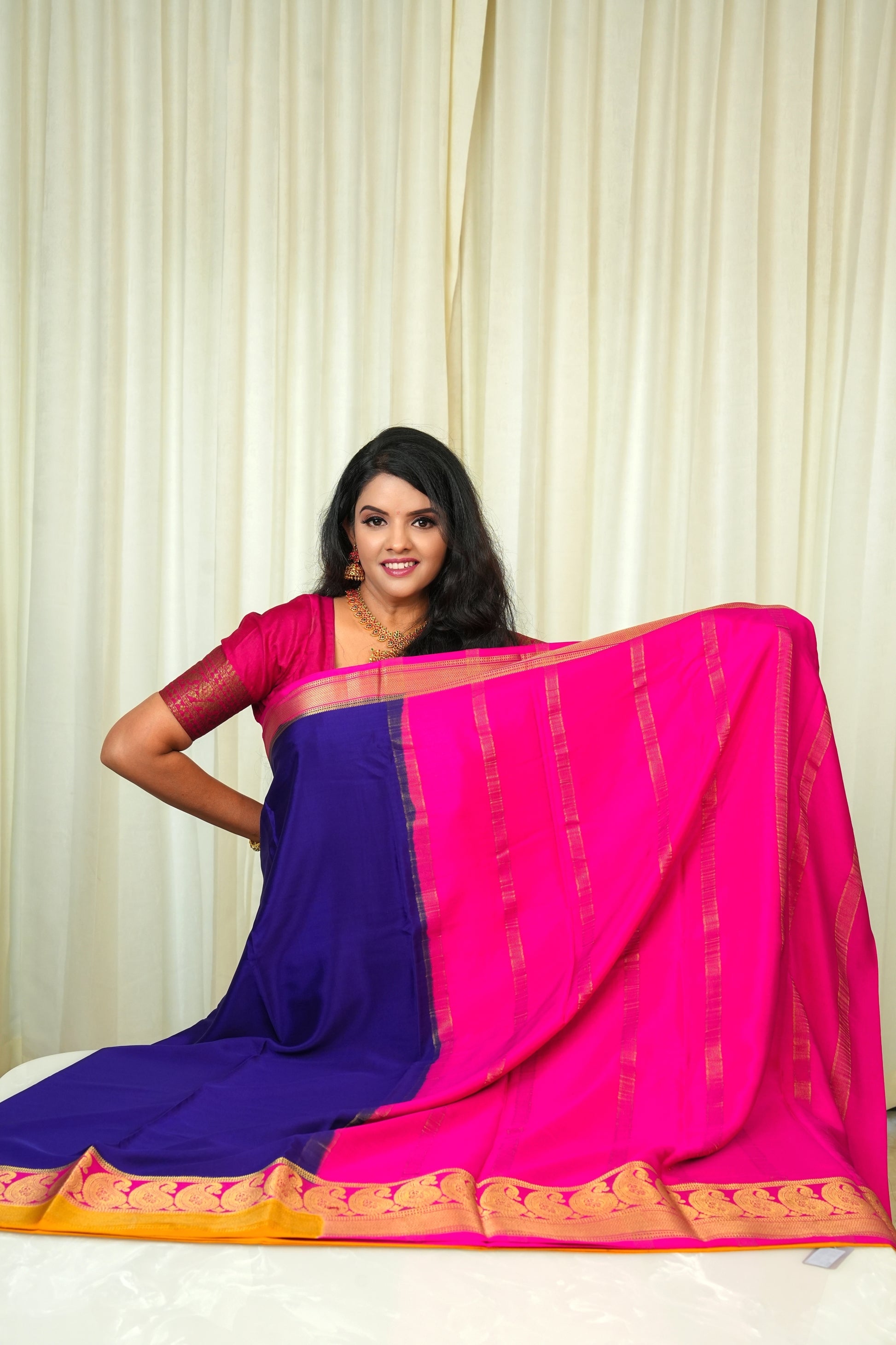 Pure Mysore Silk Royal Blue And Pink Saree With Zari