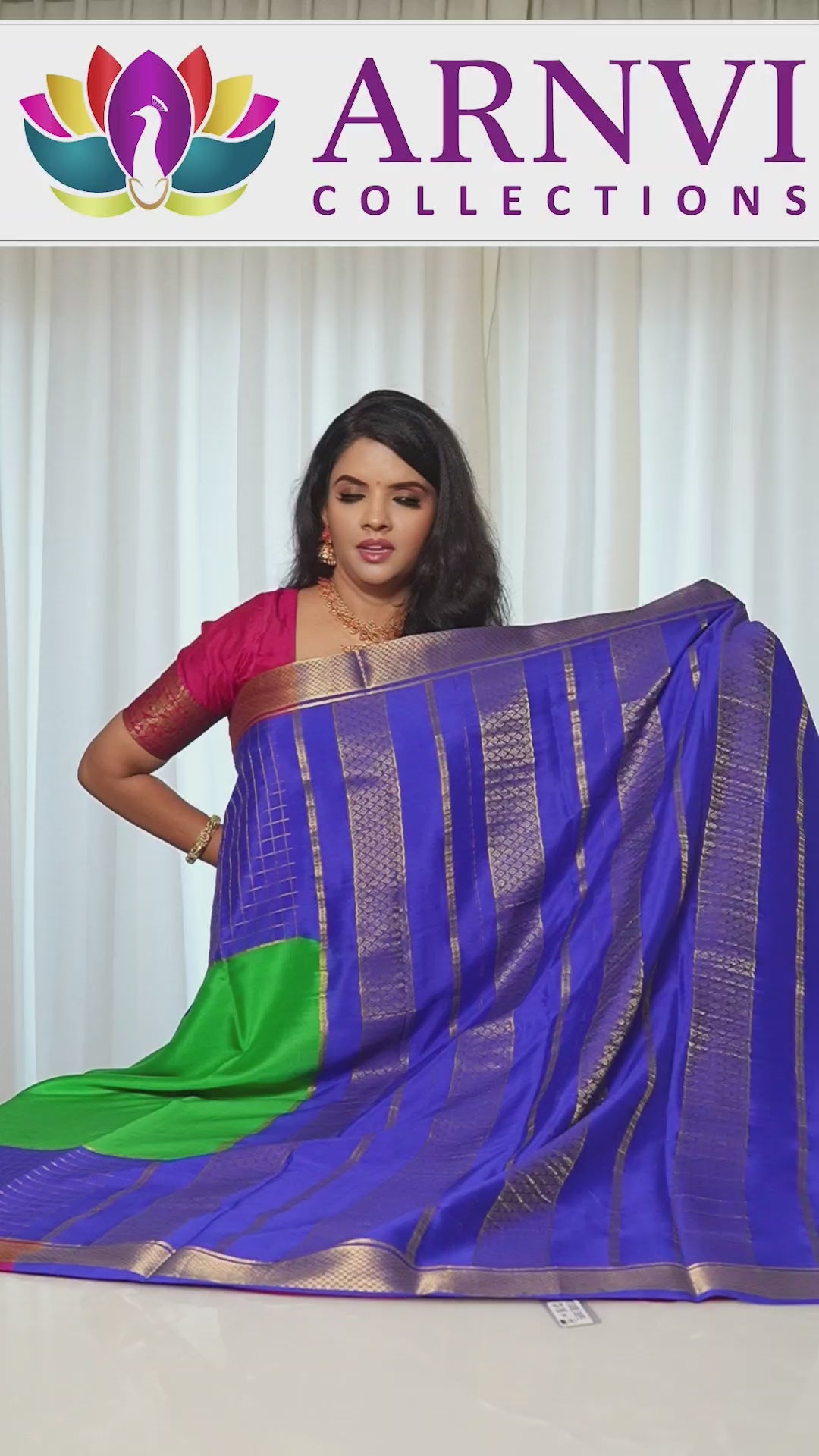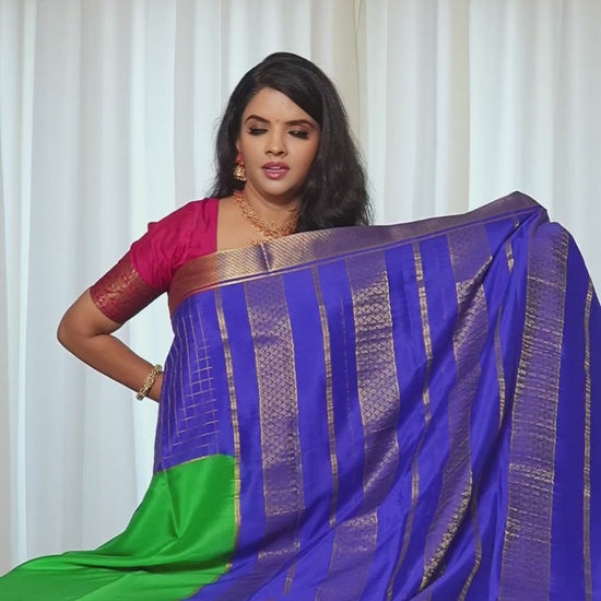 Pure Mysore Silk Parroy Green And Royal Blue Saree With Zari