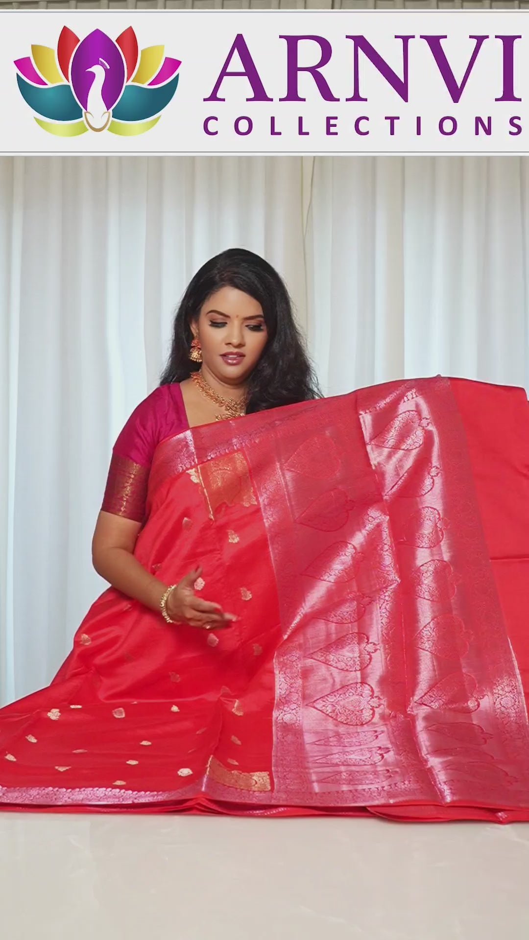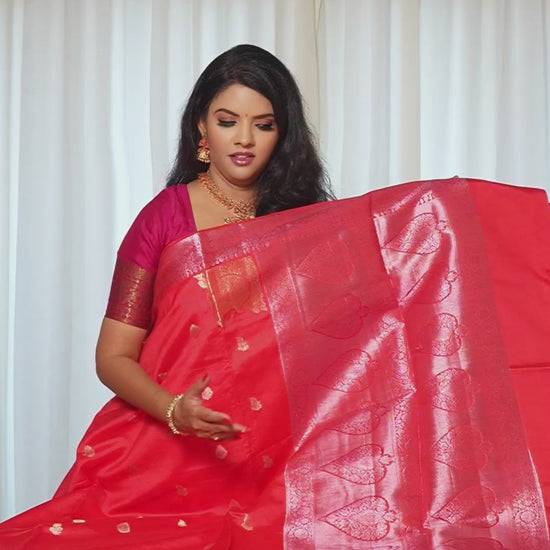 Raw Mango Silk Cherry Red And Silver Zari Pallu Saree