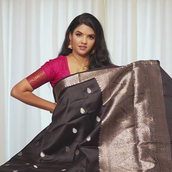 ๐จ Design Highlight: A striking contrast of deep black with subtle metallic zari, making it ideal for both day and evening wear